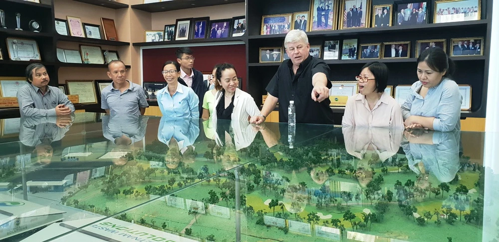 Ông Kevin Moore, Giám đốc điều hành VWS, đã giới thiệu cho đoàn bác sĩ về quy trình xử lý chất thải, nước thải và kỹ thuật vận hành của Khu liên hợp xử lý chất thải Đa Phước. Ông Kevin Moore cho biết công suất của bãi tiếp nhận rác Đa Phước được thiết kế khoảng 24 triệu tấn. Hiện nay bãi đã tiếp nhận được khoảng 14 triệu tấn.