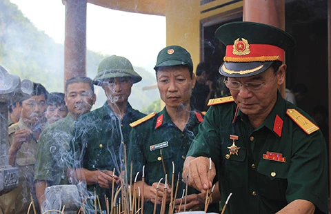 Những cựu binh Vị Xuyên trở về chiến trường xưa tưởng niệm những đồng đội đã nằm lại trong trận chiến bất tử 32 năm trước. Ảnh: V.LINH