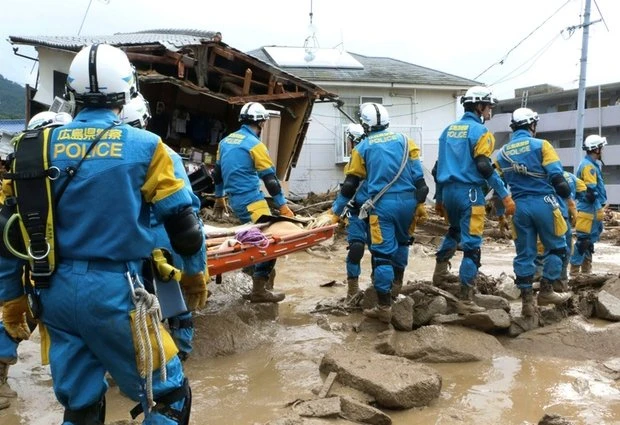Kênh truyền hình trung ương NHK đưa hình ảnh về nhóm cứu nạn và nhiều cảnh sát đã có mặt để giúp đưa các nạn nhân đến nơi an toàn. Nhiều người phải trèo qua cửa sổ để vào các ngôi nhà bị đất đá lấp hết cửa ra vào để tìm kiếm các nạn nhân sống sót khác.