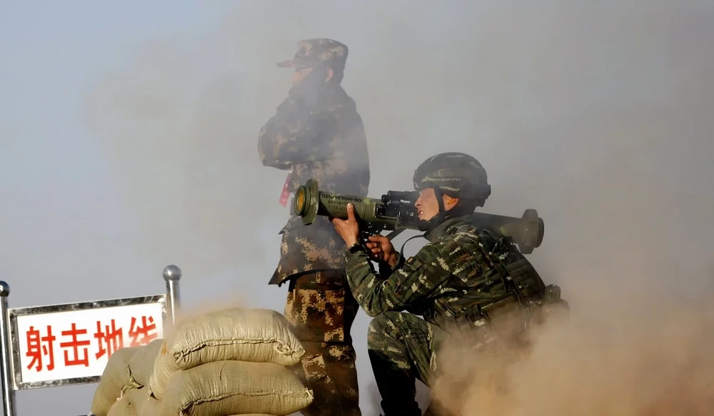 Một binh sĩ Trung Quốc tham gia diễn tập chung Nga-Trung về chống khủng bố ở Yinchuan, Ningxia tháng 12-2017. Ảnh: Tân Hoa Xã