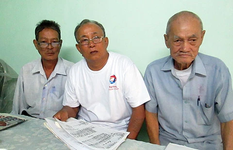 Các ông Tình, Thành, Tâm (từ trái sang) có nguyện vọng sớm được VKSND TP Cần Thơ bồi thường oan. Ảnh: N.NAM