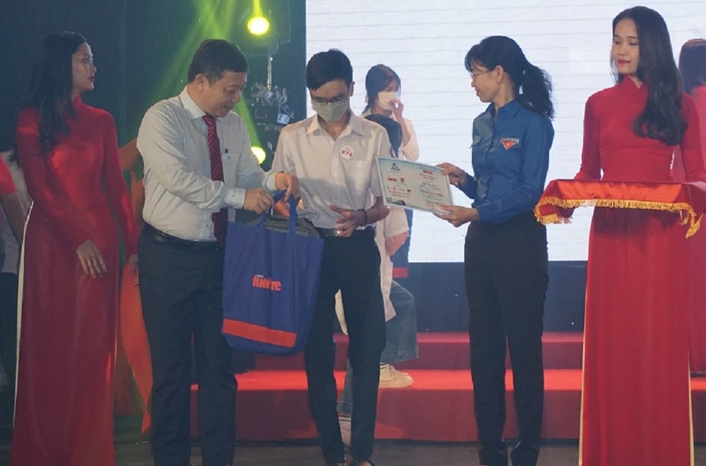 Ông Dương Anh Đức, Phó Chủ tịch UBND TP.HCM và bà Phan Thị Thanh Phương, Bí thư Thành đoàn TP.HCM, trao học bổng cho các sinh viên. Ảnh: NGUYỄN QUYÊN
