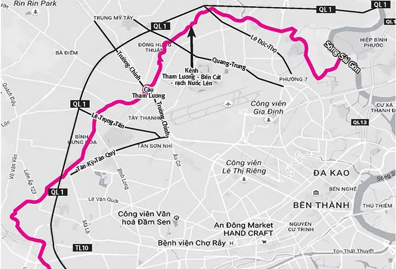 Nếu thực hiện đúng theo tiến độ đề xuất, đến năm 2019, dọc tuyến kênh Tham Lương - Bến Cát - rạch Nước Lên sẽ hình thành hai trục đường lớn. Với chiều dài mỗi bên hơn 31 km, chạy qua địa bàn bảy quận, huyện. Khi đó, đây sẽ là một trong những vành đai giao thông quan trọng của TP.HCM.