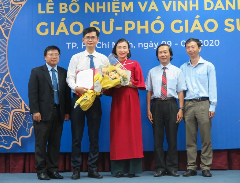 Các tân GS và PGS được vinh danh tại buổi lễ . Ảnh: PHẠM ANH