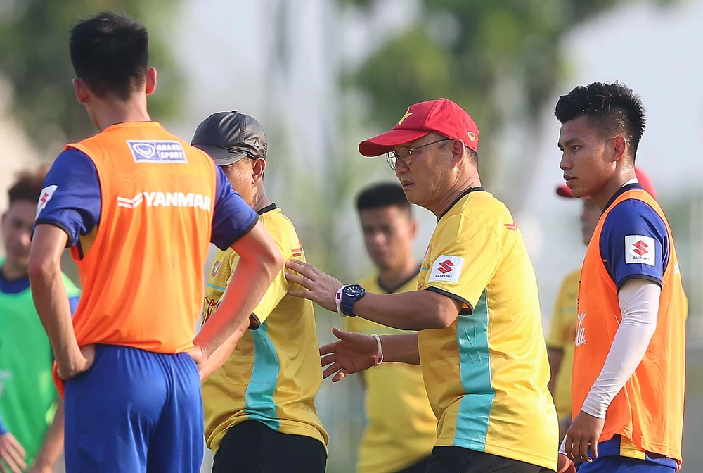 Ông Park đặt mục tiêu sẽ thắng hai trong ba trận còn lại ở vòng loại thứ hai World Cup 2022. Ảnh: NGỌC DUNG.