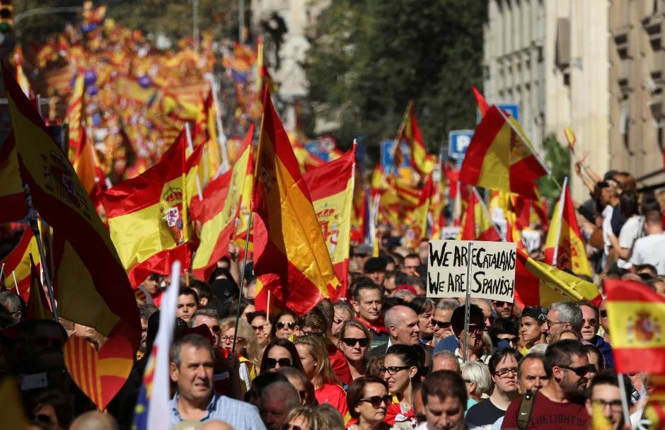 Cảnh sát ước tính có khoảng 350.000 người đã tham gia vào cuộc biểu tình phản đối Catalonia tuyên bố độc lập, trong khi phía ban tổ chức công bố có khoảng 930.000 người đã xuống đường. Đám đông cầm theo cờ Tây Ban Nha, cờ Catalonia, cùng với các biểu ngữ và hô vang các khẩu hiệu như “Calalonia là Tây Ban Nha”.