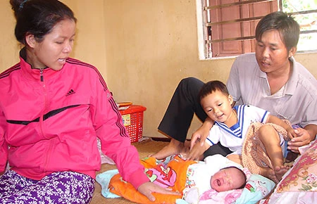 Gia đình chị Phạm Thị Bích Luyện vui mừng bé Vi Sa mới ra đời. Ảnh: TM