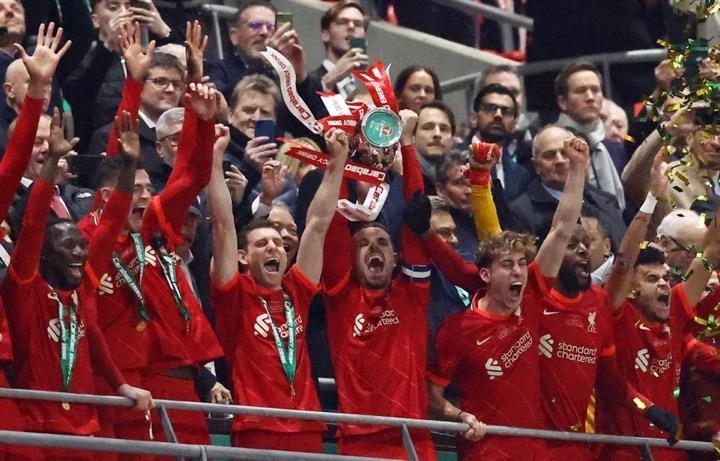 Liverpool ăn mừng chức vô địch League Cup. ẢNH: SUN SPORTS