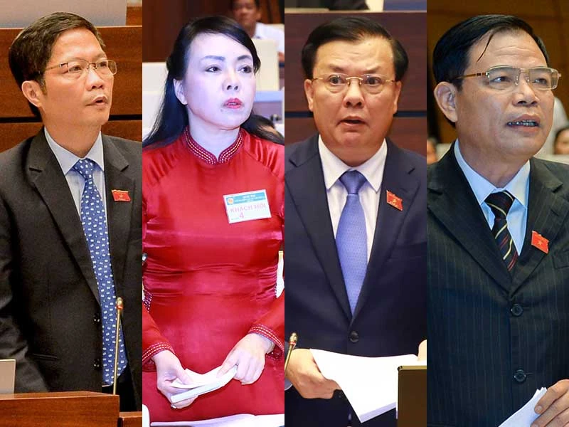 Từ trái qua: Bộ trưởng Công Thương Trần Tuấn Anh; Bộ trưởng Bộ Y tế Nguyễn Thị Kim Tiến; Bộ trưởng Bộ Tài chính Đinh Tiến Dũng; Bộ trưởng Bộ NN&PTNT Nguyễn Xuân Cường.