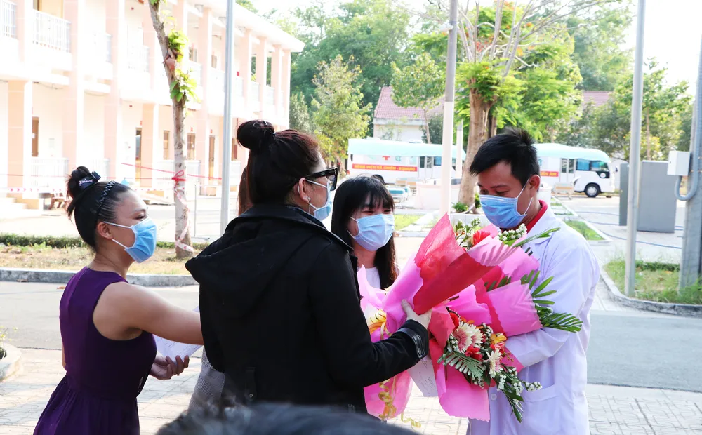 Sau khi được cấp giấy ra viên, các nữ bệnh nhân đều bày tỏ sự vui mừng. Họ gửi lời cảm ơn, tặng hoa đến các đội ngũ y bác sĩ ở bệnh viện dã chiến ở huyện Củ Chi.