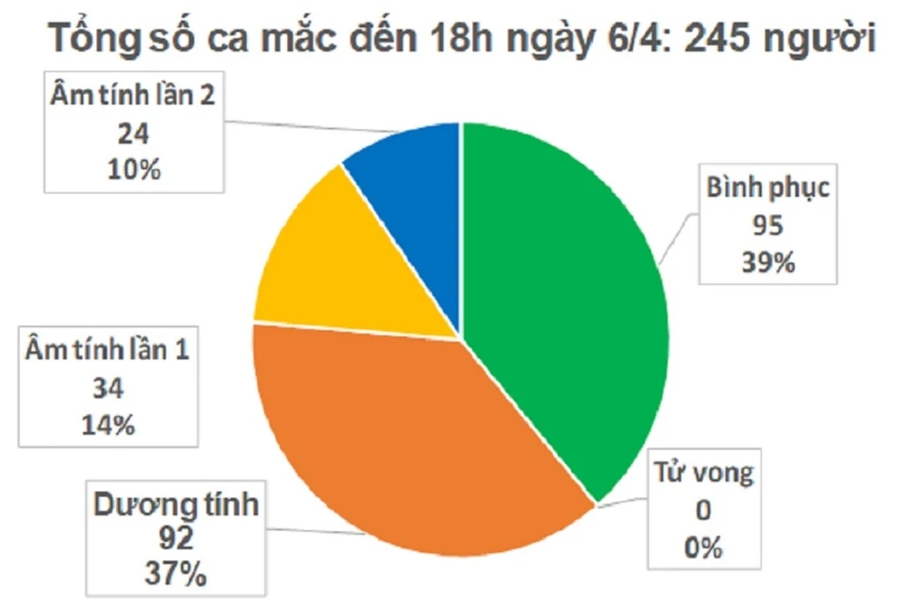 Tổng số ca nhiễm COVID-19 tại Việt Nam tính đến 18 giờ ngày 6-4. Nguồn: BYT