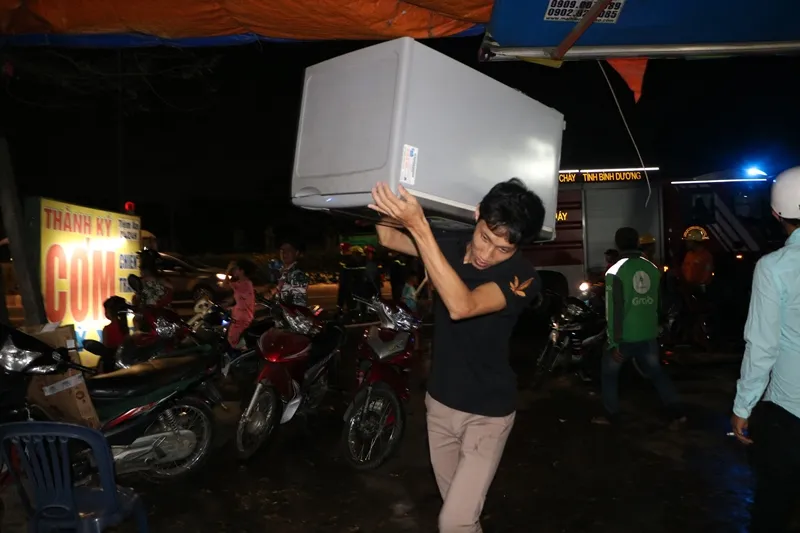 Sợ lửa lan sang, người dân ở các dãy phòng trọ sát bên đám cháy cũng di dời tất cả đồ đạc ra khỏi nhà. Ông Đỗ Khoa Nam (phường An Phú, thị xã Thuận An) cho biết, may nhờ có bức tường cao và lực lượng PCCC đến kịp thời không thì chắc lửa đã lan sang hết cả dãy phòng trọ rồi.