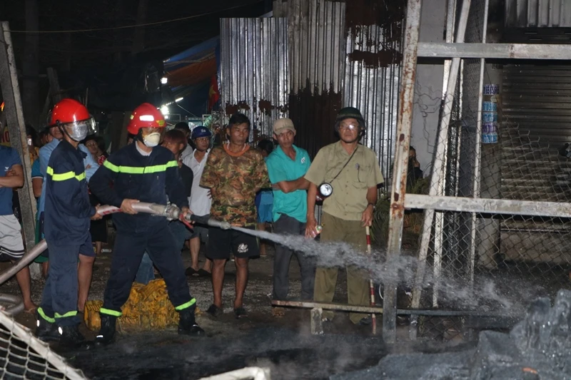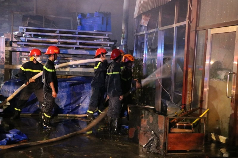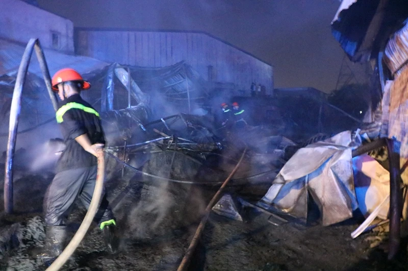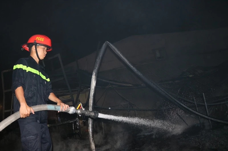 Đến khoảng 20 giờ, đám cháy đã được khống chế, lực lượng PCCC vẫn đang phun nước để dập tắt hoàn toàn.