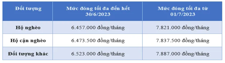 Do có sự thay đổi về lương cơ sở từ ngày 1/7/2023 nên mức đóng BHXH tự nguyện tối đa trong năm 2023 cũng có sự điều chỉnh như sau: