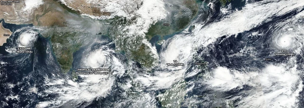 Theo ông Nguyễn Văn Hưởng - Trưởng phòng Dự báo khí hậu (Trung tâm Dự báo Khí tượng Thủy văn Quốc gia), hiện trên các đại dương đang có bốn cơn bão hoạt động cùng lúc. Đó là cơn bão số 6 (bão Nakri) ở biển Đông, bão Ma Ha ở Ấn Độ Dương, siêu bão Ha Long ở tây bắc Thái Bình Dương và bão ở vịnh Ben Gan.