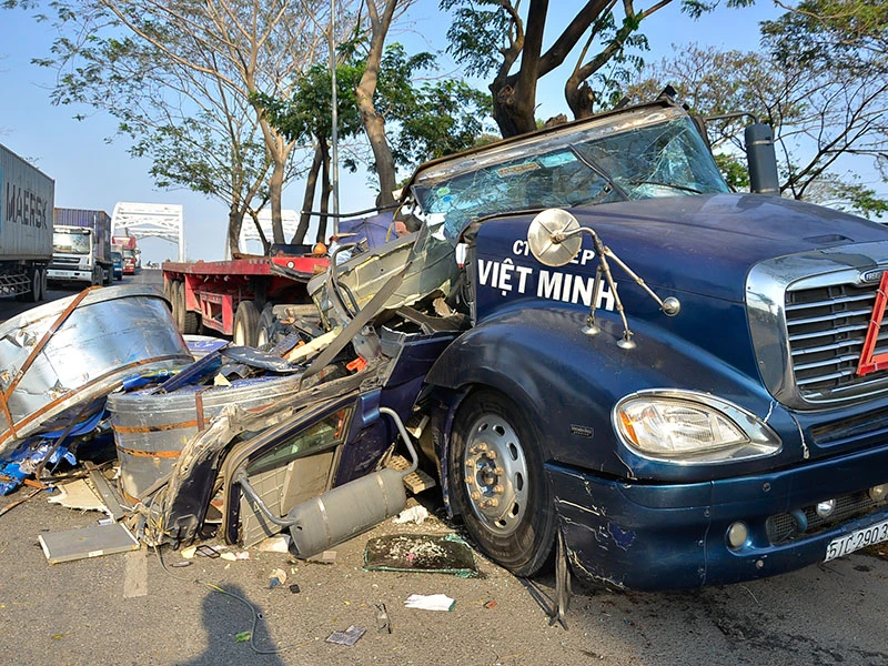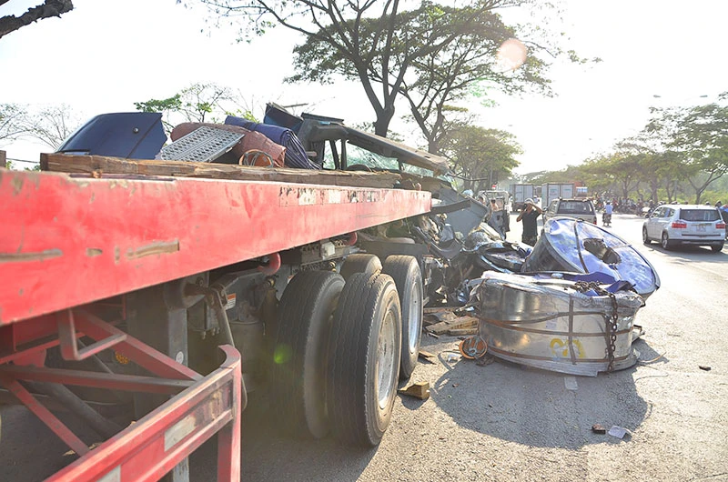 Thông tin ban đầu, chiều 8-3, xe container biển số TP.HCM kéo theo rơmoóc có bốn cuộn thép đang đổ dốc cầu Xóm Củi (xã Bình Hưng, huyện Bình Chánh, TP.HCM) thì đột nhiên thắng gấp.
