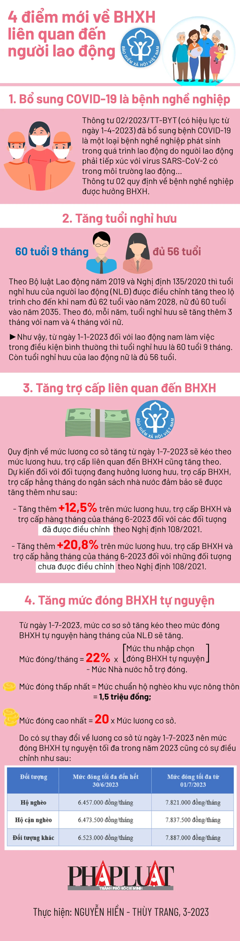(PLO)-  Một số chính sách mới về BHXH có liên quan tuổi nghỉ hưu,  mức đóng BHXH tự nguyện... của người lao động.