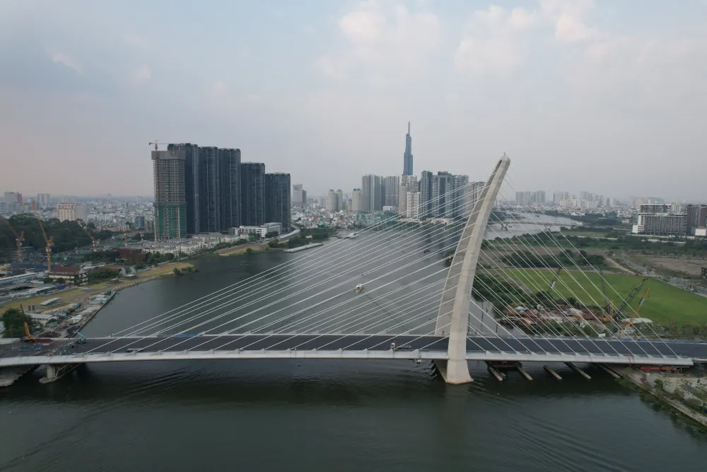 Đầu tiên là dự án cầu Thủ Thiêm 2, nối quận 1 với TP Thủ Đức. Dự án này dự kiến được hoàn thành đúng dịp 30-4, sau gần bảy năm khởi công.