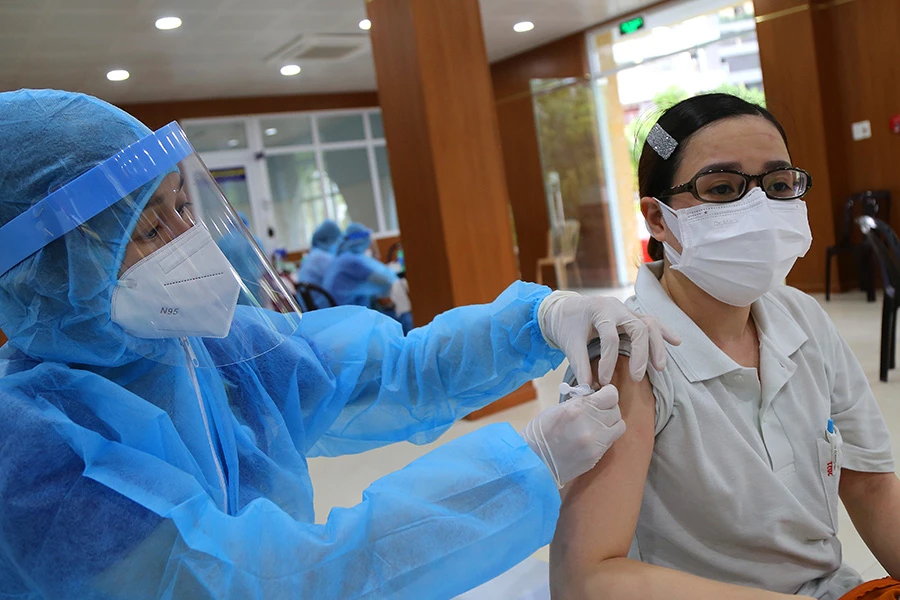Tiêm vaccine phòng COVID-19 mũi 2 cho người dân tại Viện Y Dược học dân tộc TP.HCM. Ảnh: HOÀNG GIANG