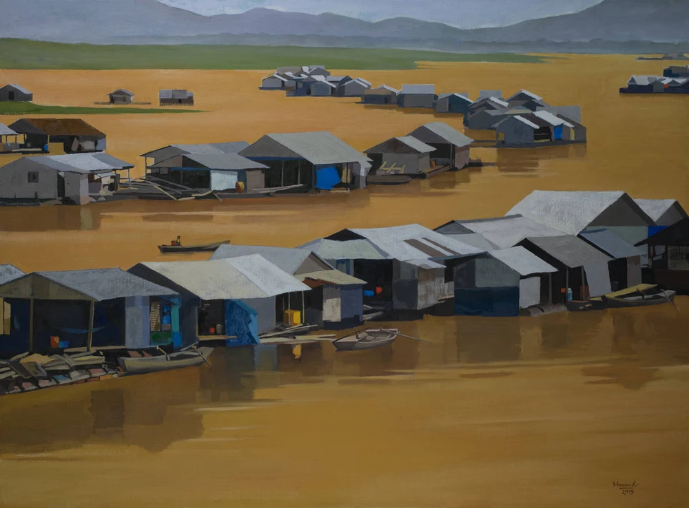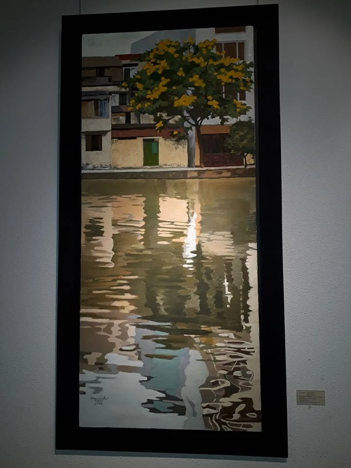 Tranh của Nguyễn Nhật Dũng ở triển lãm này lại chỉ toàn vẽ thuyền và các cửa biển gây ấn tượng sống động rất trực diện ở người xem. Anh cho biết đã đem sự quan sát những thay đổi khác biệt về thời tiết, ráng chiều… ở các cảng biển làm thành cảm xúc đưa vào tranh.