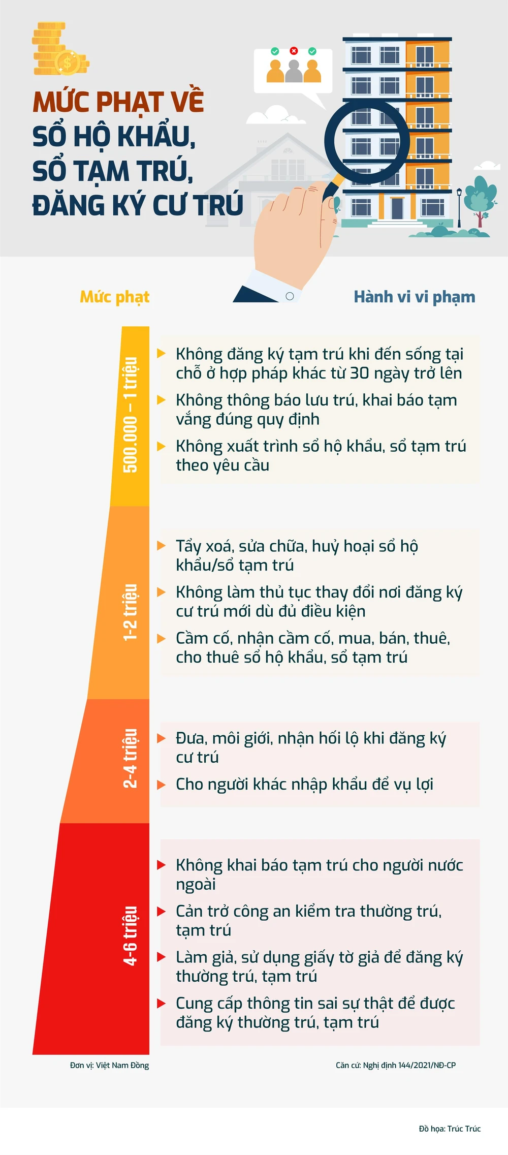 (PLO)-  Dưới đây là bốn mức phạt với những vi phạm hành chính phổ biến liên quan đến sổ hộ khẩu, sổ tạm trú, đăng ký thường trú, tạm trú mà người dân cần biết.