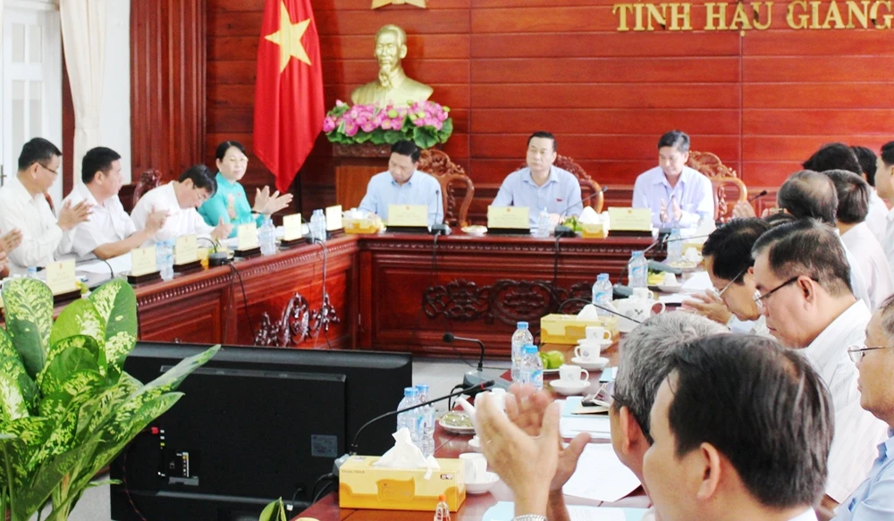 Buổi giám sát chiều 29-3 tại UBND tỉnh Hậu Giang. Ảnh: KHÁNH HOÀNG