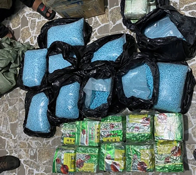 Khám xét khẩn cấp nơi ở của các nghi phạm, lực lượng Công an thu giữ thêm 90 bánh heroin, khoảng 100.000 viên thuốc lắc, 70 kg MA, 5 kg Ketamin và 35 viên đạn; đồng thời đưa hai nghi phạm có liên quan về cơ quan để điều tra làm rõ.