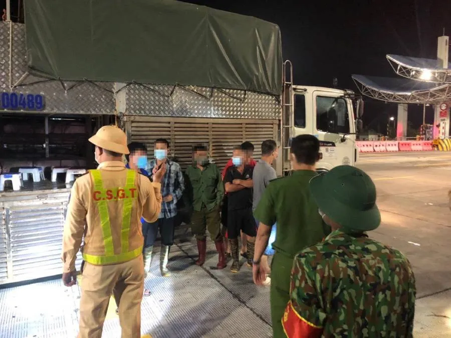 Sáng 6-10, Đội Tuần tra kiểm soát giao thông đường bộ cao tốc số 2 (Đội CSGT số 2, thuộc Cục CSGT, Bộ Công an), cho biết vừa phát hiện một nhóm người trốn trong thùng xe chở heo để thông chốt kiểm dịch COVID-19.