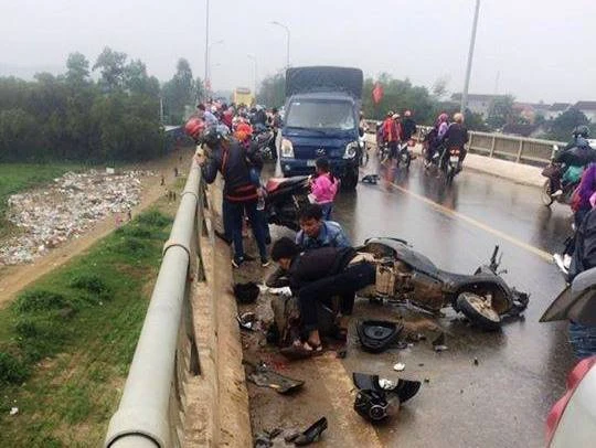 Cú tông mạnh khiến ba người trên xe máy bay qua lan can rơi thẳng xuống bãi đất bờ sông Lam. Bà Xuân và chị Huệ tử vong tại chỗ. Cháu Huy được đưa đến BV Sản nhi Nghệ An cấp cứu, nhưng đã tử vong vào tối 1-2.