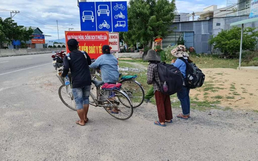 Những người làm nhiệm vụ tại chốt kiểm soát Chung Mỹ (thuộc thị trấn Phước Dân, huyện Ninh Phước) cho biết, bốn người Nghệ An đang từ Trảng Bom, Đồng Nai trên đường đạp xe về quê dưới cái nắng gay gắt.