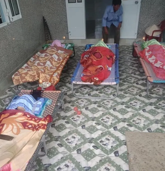 Thi thể bốn nạn nhân được đưa về nhà để lo hậu sự. Ảnh: LIÊN TRẦN