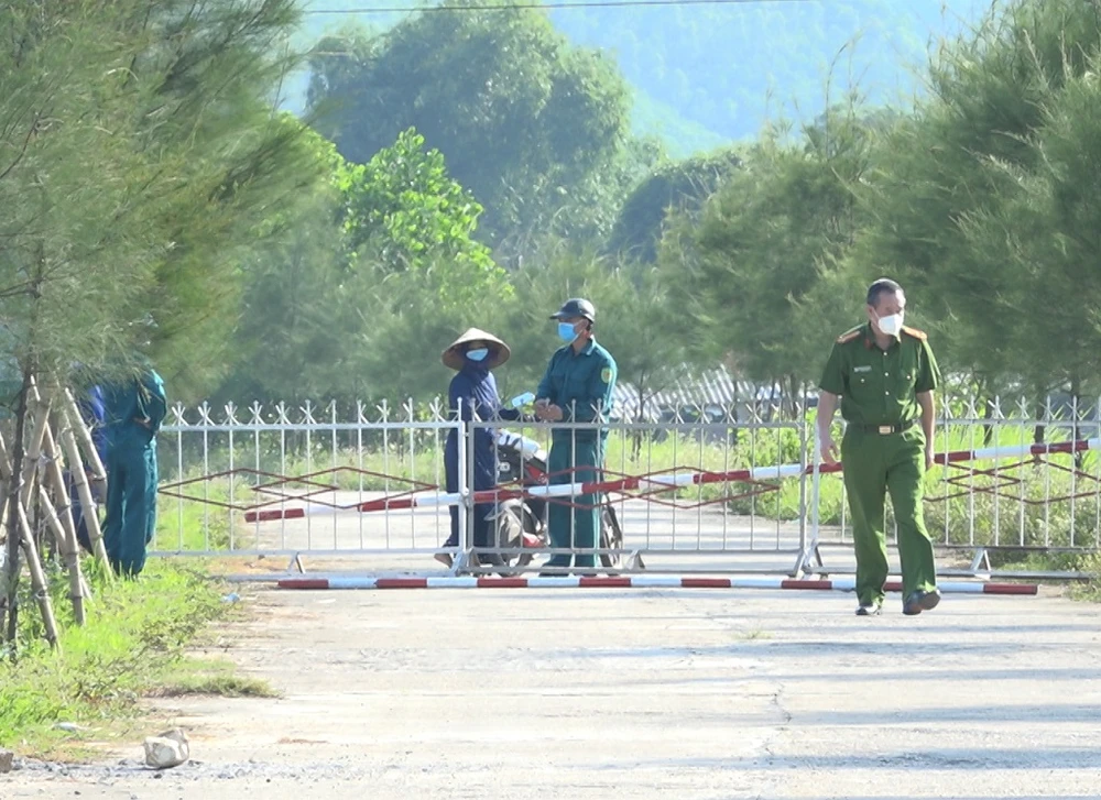 Lực lượng chức năng lập chốt kiểm soát ra vào khu cách ly tập trung. Ảnh: UBND huyện Hạ Hòa