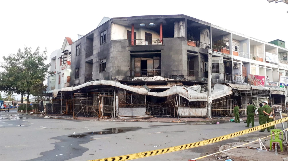 Công an đang điều tra nguyên nhân vụ hỏa hoạn làm bốn người tử vong xảy ra ở thị trấn Kiên Lương, huyện Kiên Lương, tỉnh Kiên Giang. Ảnh: ANH TRINH