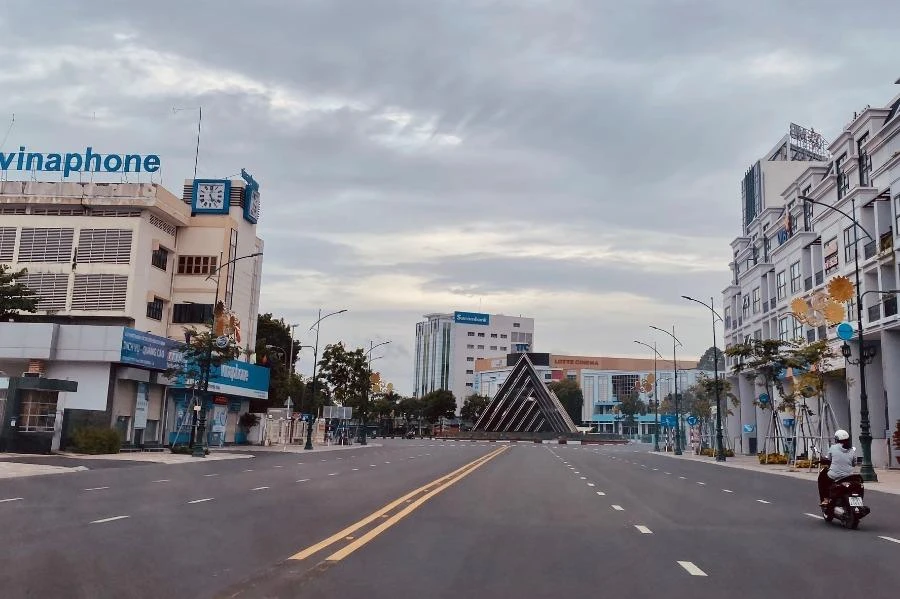 Đường phố TP Tây Ninh vắng lặng sau khi tỉnh này áp dụng Chỉ thị 16. Ảnh: HỒNG GIANG