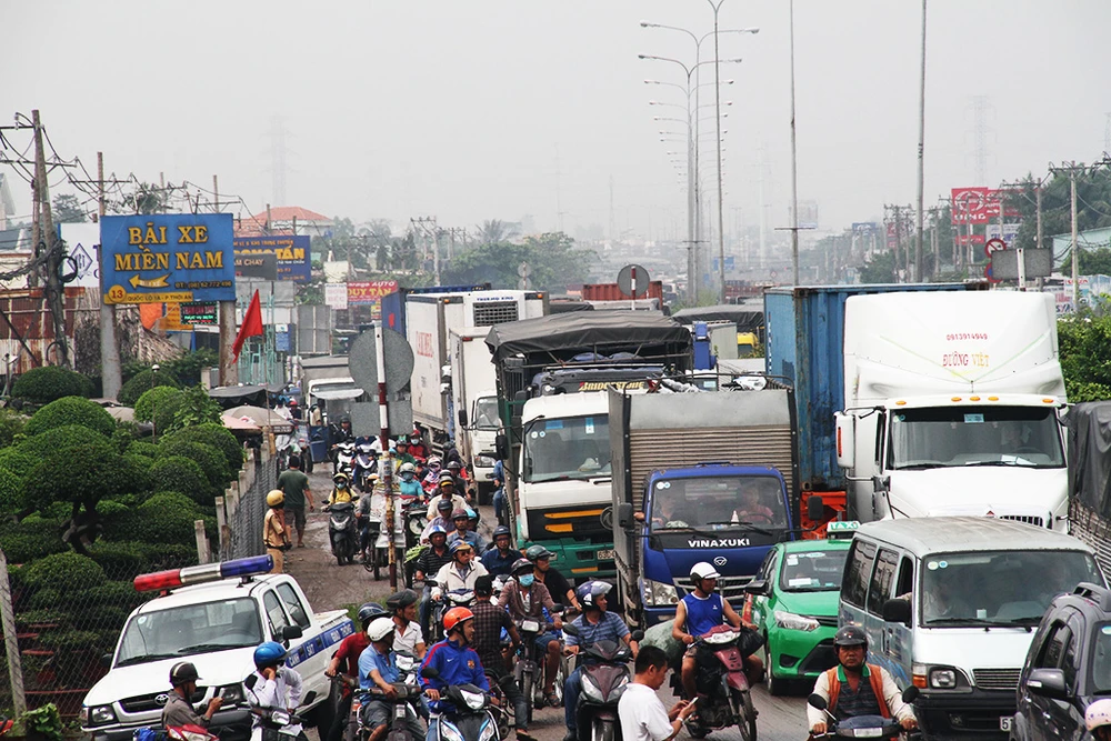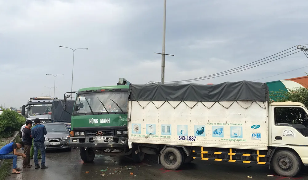 5 xe tông liên hoàn trên quốc lộ 1A đoạn qua quận 12 sáng 21-12.