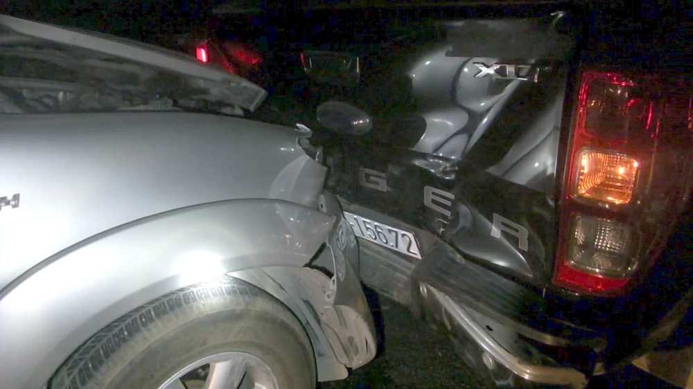Theo đó, tối 4-11, ô tô bán tải 51D-156.72 (chưa rõ tài xế) chạy trên cao tốc TP.HCM-Trung Lương, hướng Tiền Giang về TP.HCM. Tới địa bàn xã Hướng Thọ Phú, xe này bất ngờ va chạm với một ô tô chạy cùng chiều phía trước.