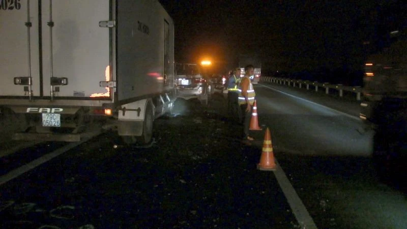 Cùng thời điểm, xe bảy chỗ 61A-081.26 và xe tải 79C-050.26 từ phía sau lao tới tạo nên chuỗi va chạm liên hoàn. May mắn vụ tai nạn không gây thiệt hại về người nhưng các phương tiện bị hư hỏng sau tai nạn.