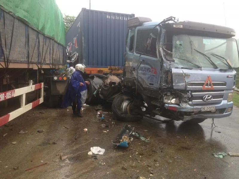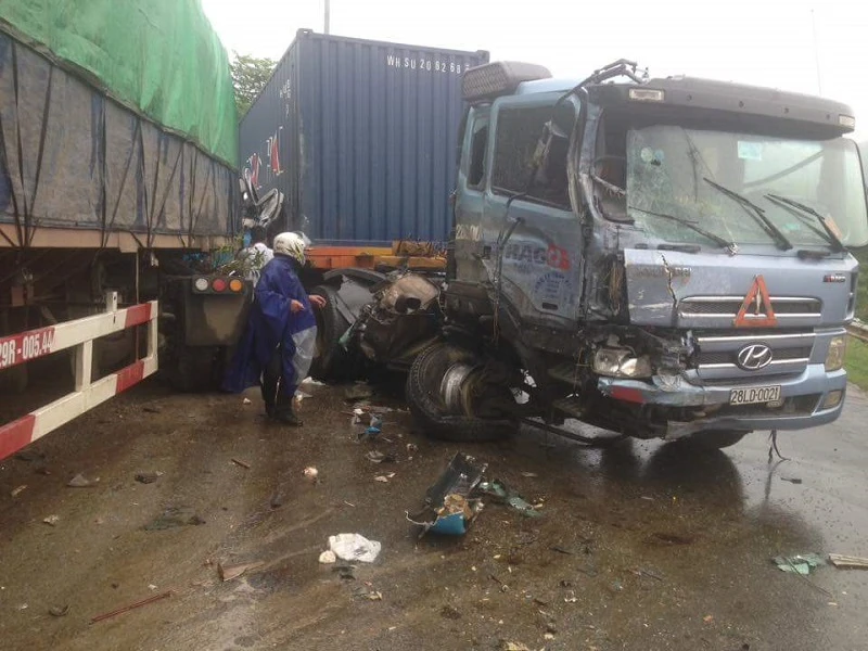 Vào thời điểm trên, do mất tay lái, hai chiếc xe đầu kéo, một chiếc xe khách cùng một xe bán tải đã đâm liên hoàn vào nhau.