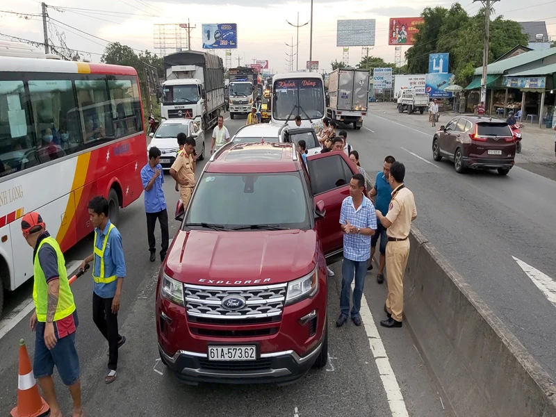 Vào thời điểm trên, ô tô 7 chỗ 61A-573.62 chạy trên đường dẫn cao tốc TP HCM - Trung Lương, hướng từ trạm thu phí Thân Cửu Nghĩa ra vòng xoay cao tốc. Khi xe qua đoạn địa bàn xã Thân Cửu Nghĩa và xã Tam Hiệp tài xế giảm tốc độ vì nhiều xe phía trước.