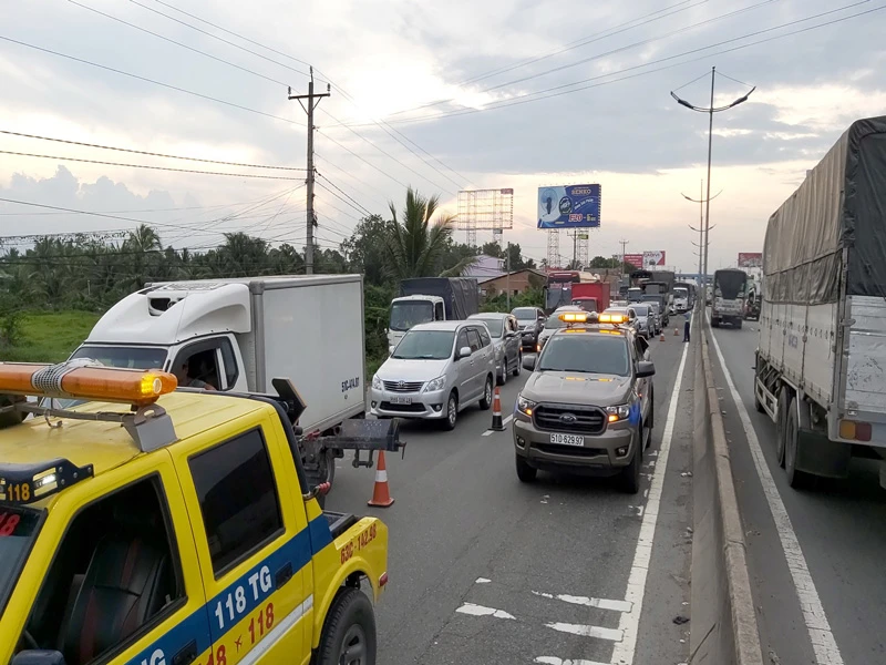 Đội tuần tra đảm bảo giao thông cứu hộ cứu nạn đường cao tốc TP.HCM – Trung Lương kịp thời có mặt tại hiện trường phối hợp đội CSGT công an huyện Châu Thành cùng lực lượng chức năng điều tiết giao thông, làm rõ nguyên nhân vụ tai nạn.