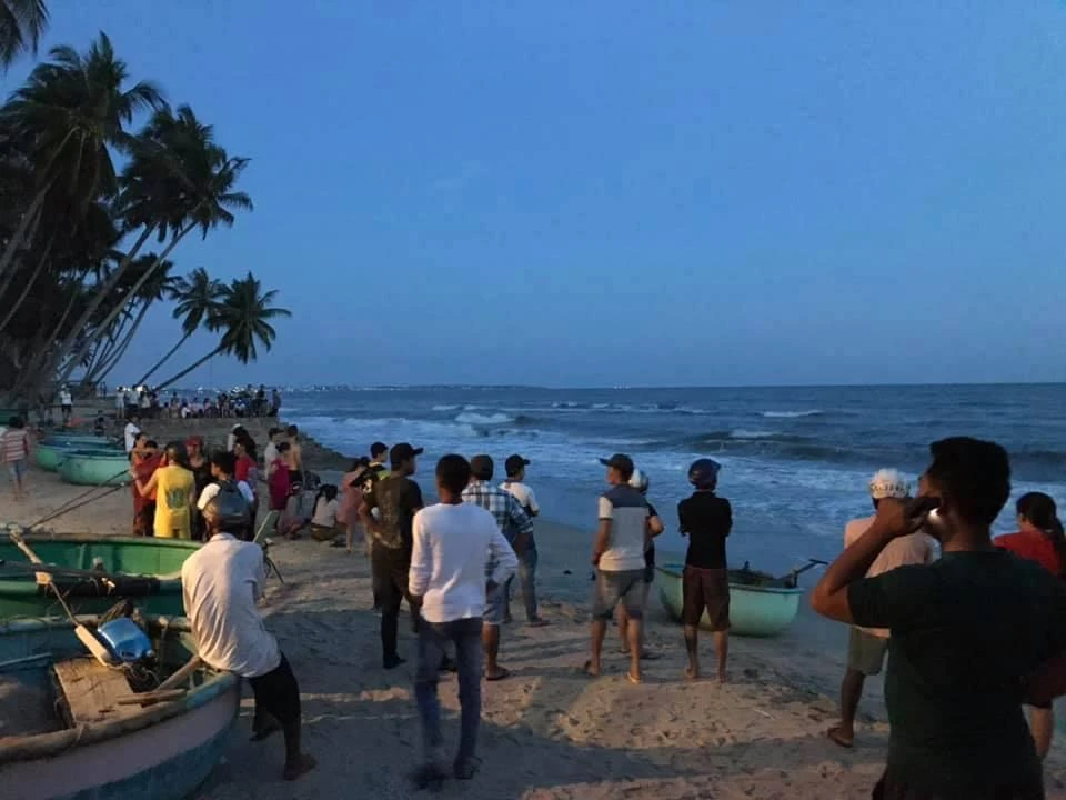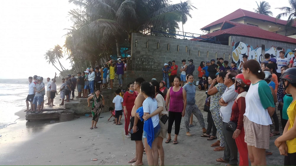 Nhiều người tập trung trên bờ biển chờ tin của lực lượng tìm kiếm.