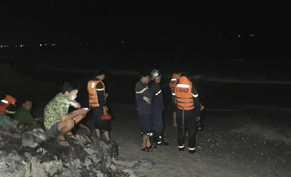Lực lượng tìm kiếm cứu hộ đang huy động phương tiện quần nát khu vực biển nơi bốn thanh niên gặp nạn.