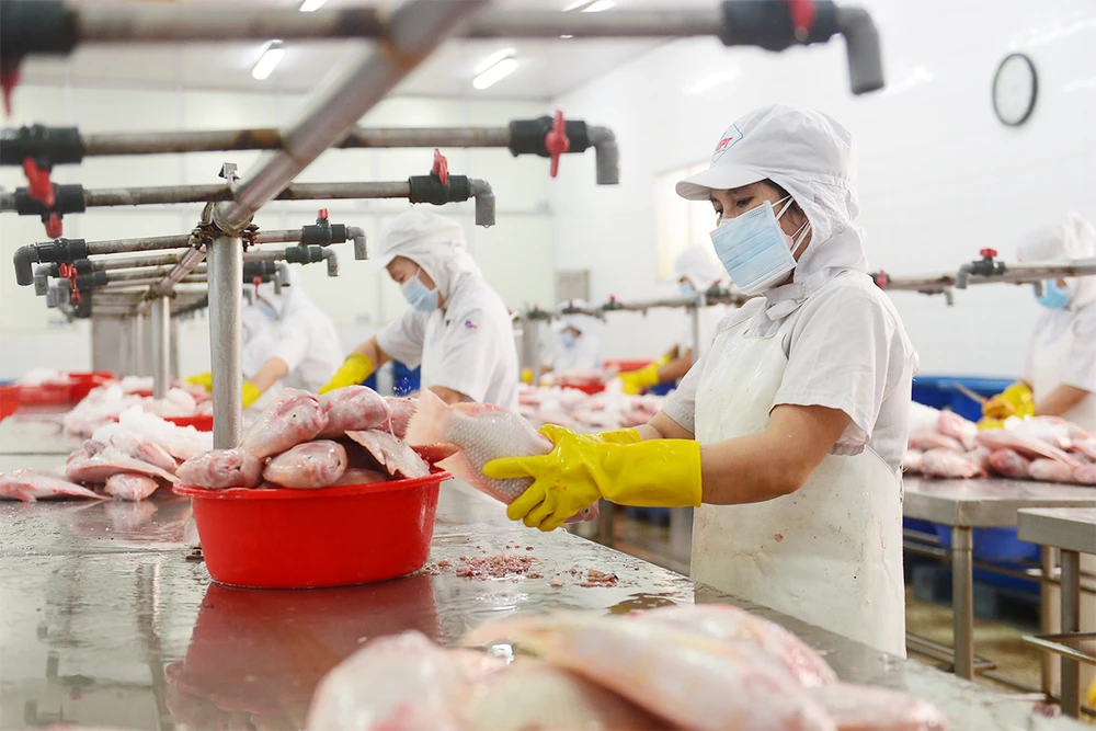 Các chuyên gia cho rằng Chính phủ và chính quyền TP cần thúc đẩy các gói hỗ trợ, gói đầu tư để cải thiện và nâng cao đời sống người dân, doanh nghiệp. Trong ảnh: Công nhân làm việc trở lại tại một công ty thủy hải sản ở TP.HCM. Ảnh: HOÀNG GIANG