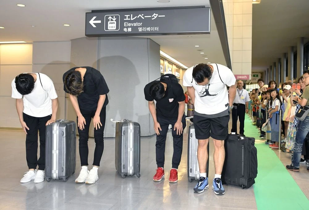 Bốn tuyển thủ bị đuổi từ Indonesia về đến sân bay Nhật là phải cúi đầu tạ lỗi.