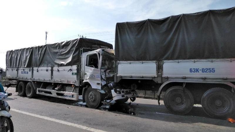 Bất ngờ từ phía sau, xe tải khác là 63C-068.96 chạy tới và không kịp thắng, qua đó tạo nên chuỗi va chạm liên hoàn giữa bốn xe.
