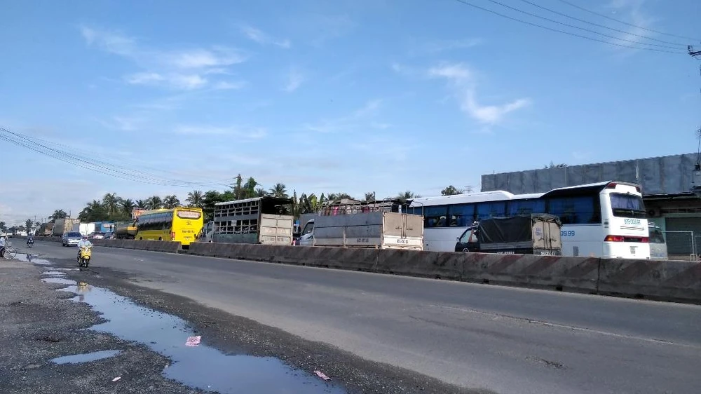 Khoảng 7 giờ 30 sáng 20-9, xe tải 63C-109.10 chạy trên QL1A hướng từ TP.HCM về miền Tây. Khi xe này qua xã Long Định, huyện Châu Thành (Tiền Giang) thì tài xế phát hiện phía trước có chướng ngại vật nên đã giảm tốc độ và dừng phương tiện. Hai xe tải 71C-020.35, 63K-0255 chạy phía sau cũng giảm tốc độ theo.
