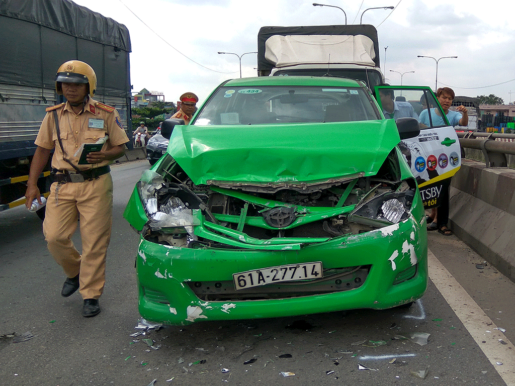 Cú tông mạnh khiến xe phía trước lao tới, tông vào đuôi taxi bảy chỗ biển số 61A… do tài xế tên Tú điều khiển. Lực tông mạnh đẩy taxi lao tới trước, tông tiếp vào đuôi xe tải biển số 61C tạo thành vụ va chạm liên hoàn giữa bốn phương tiện.