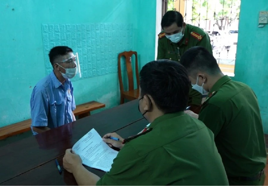 Đinh Xuân Giáo tại cơ quan công an. Ảnh: CAQB