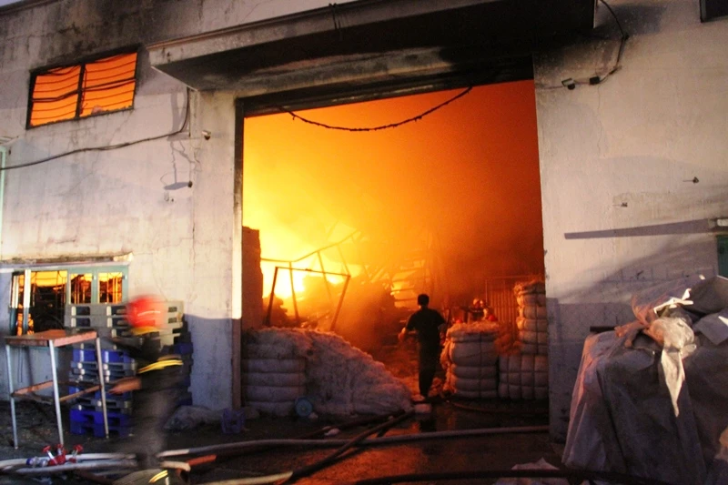 Lửa lớn bùng phát trong lúc các nhân công đã nghỉ việc nên việc chữa cháy tại chỗ không được triển khai. Lửa bắt gặp các vật liệu dễ cháy như bông, vải, sợi tổng hợp nên nhanh chóng bốc cao, lan rộng. Khói lửa thiêu rụi toàn bộ 400 mét vuông nhà kho với nhiều tài sản bên trong.
