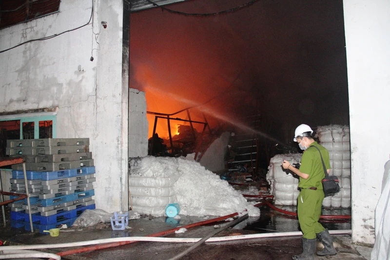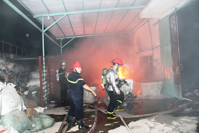 Lực lượng cảnh sát PCCC với 18 xe chữa cháy và hơn 100 cán bộ chiến sỹ tiếp cận 4 mặt nhà kho, dùng búa đục tường, phá mái tôn để truyền tiếp nước. Đến khoảng 18 giờ 30 ngọn lửa đã được khống chế.